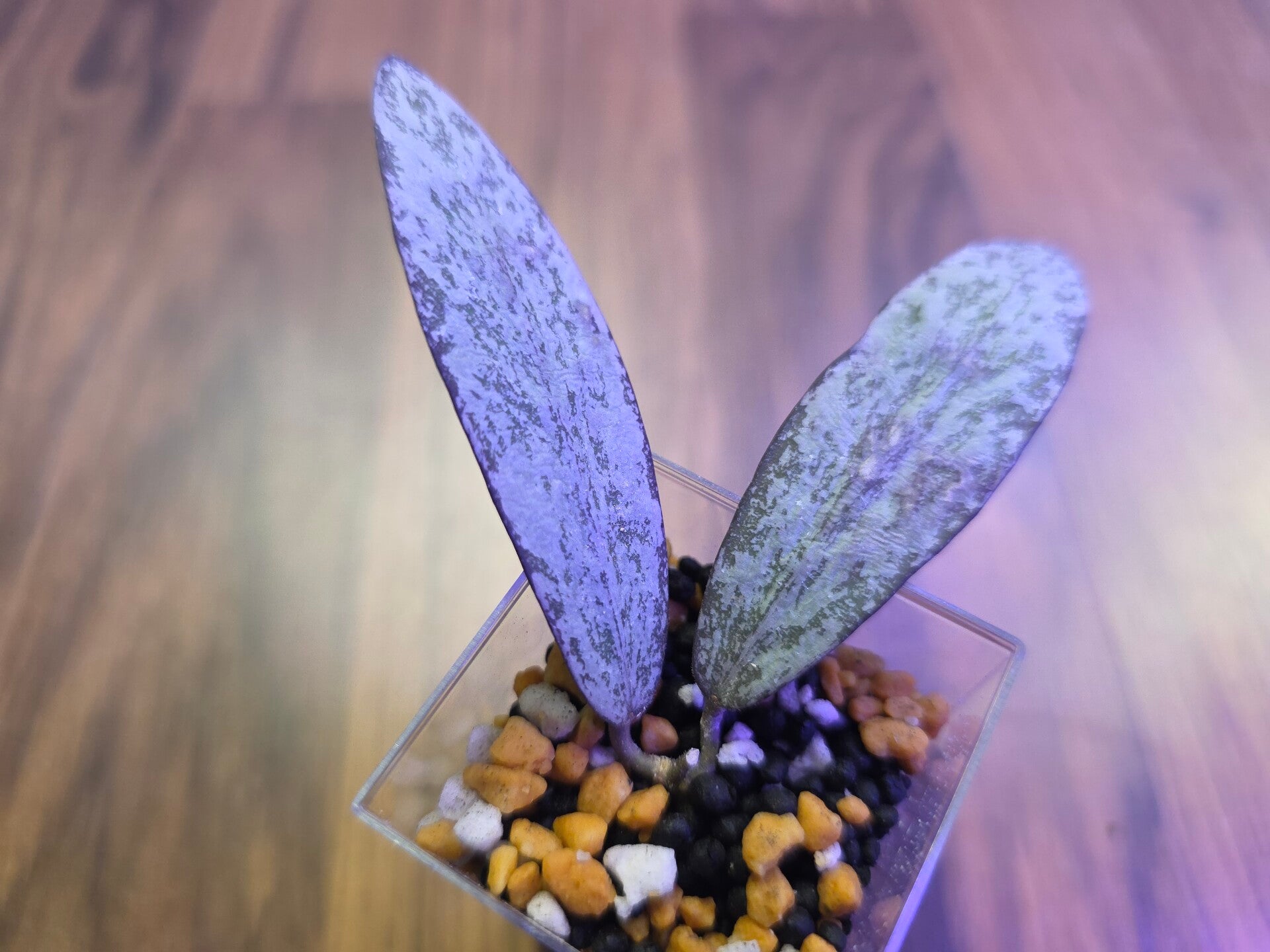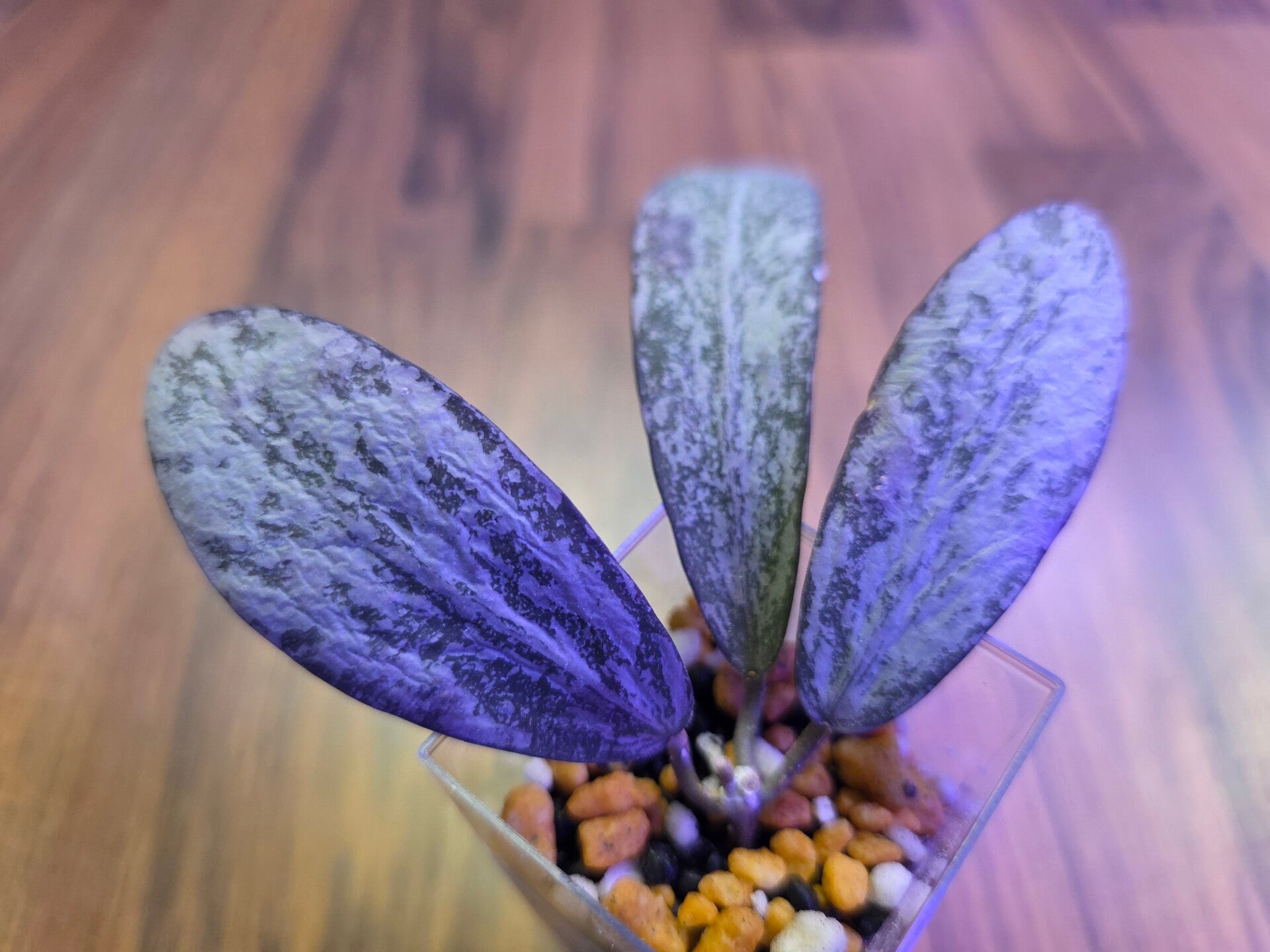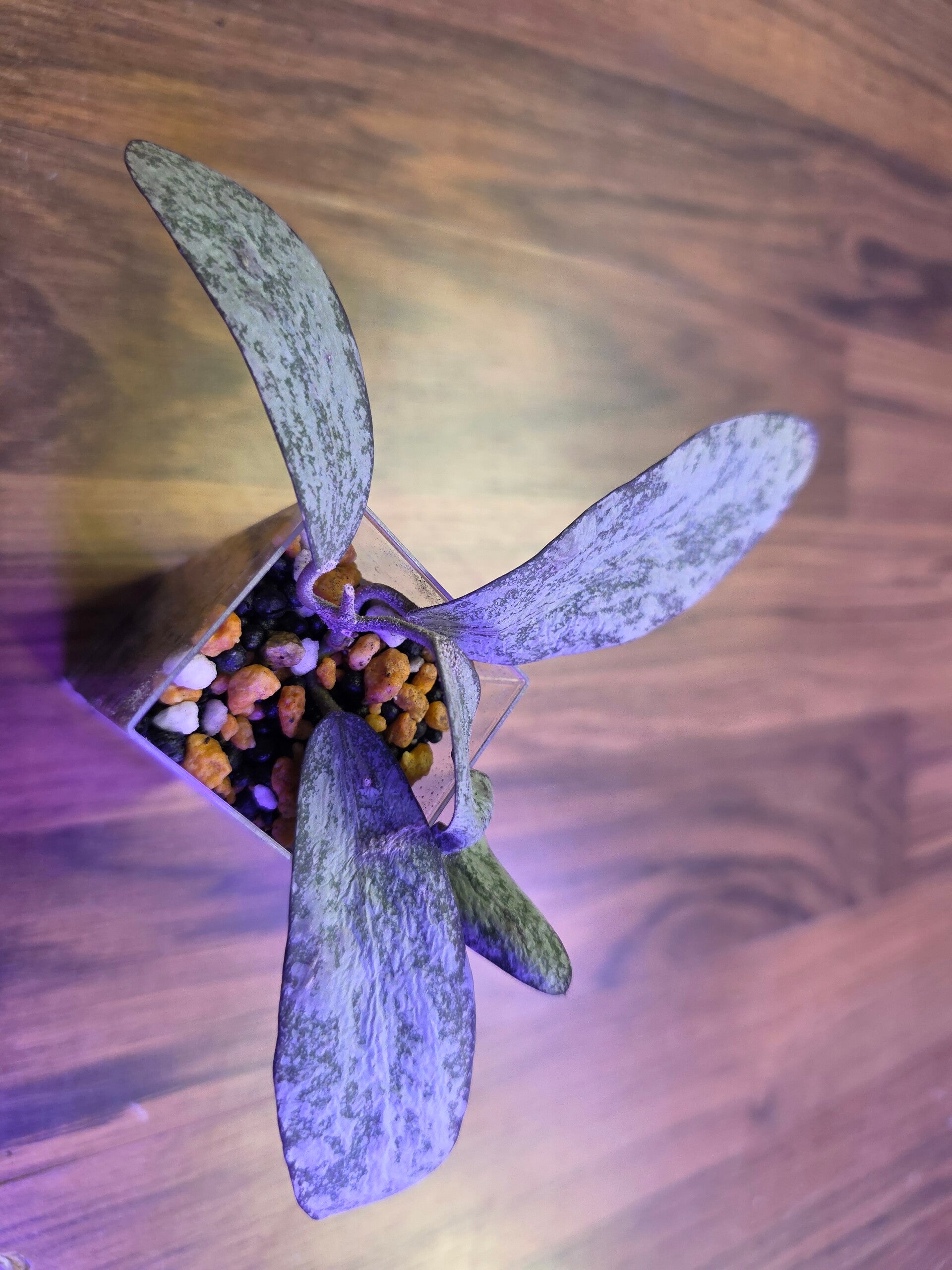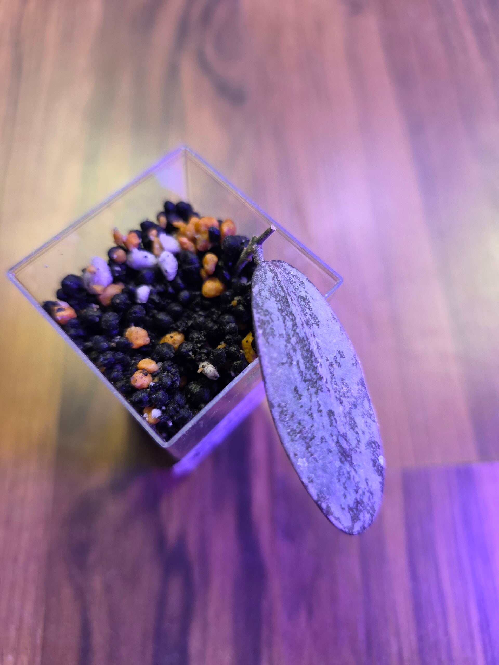 Die Stecklinge wurden im Wasser bewurzelt und stehen jetzt im Acrylbecher mit Stratum/Kanuma.