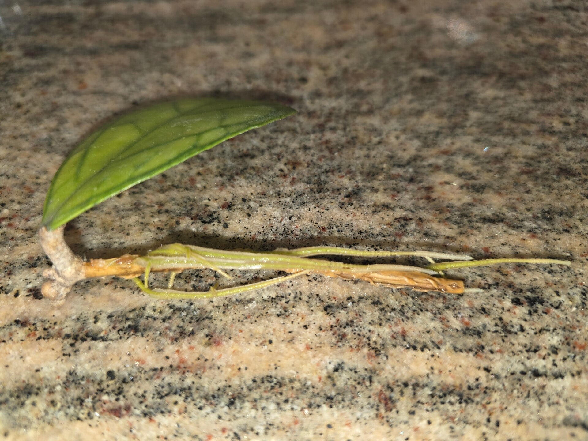 Aktuell ist der Steckling inzwischen bewurzelt und wurde im Reagenzglas mit Wasser bewurzelt.