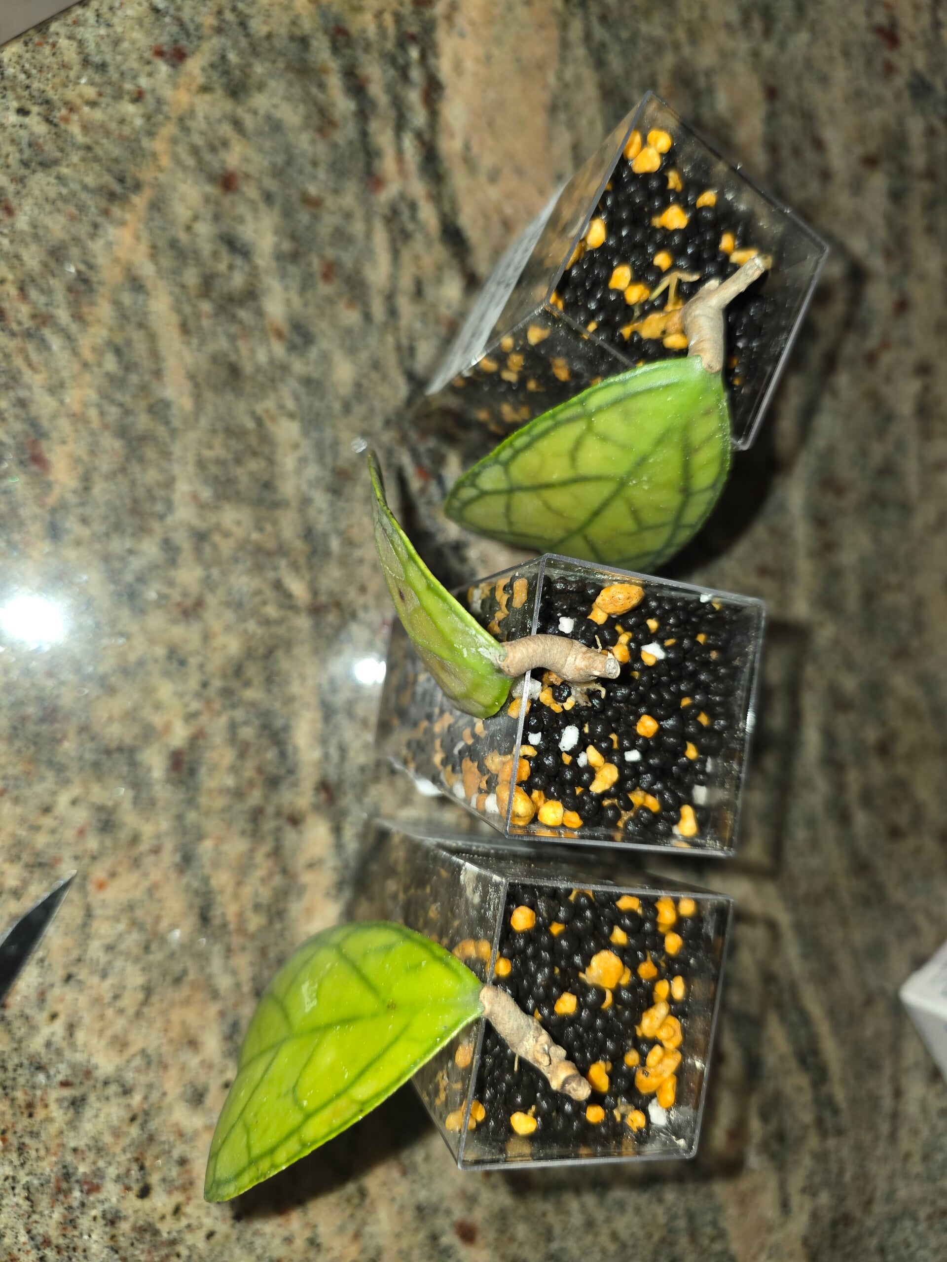 Nun steht der Steckling im Acrylbecher mit Stratum.