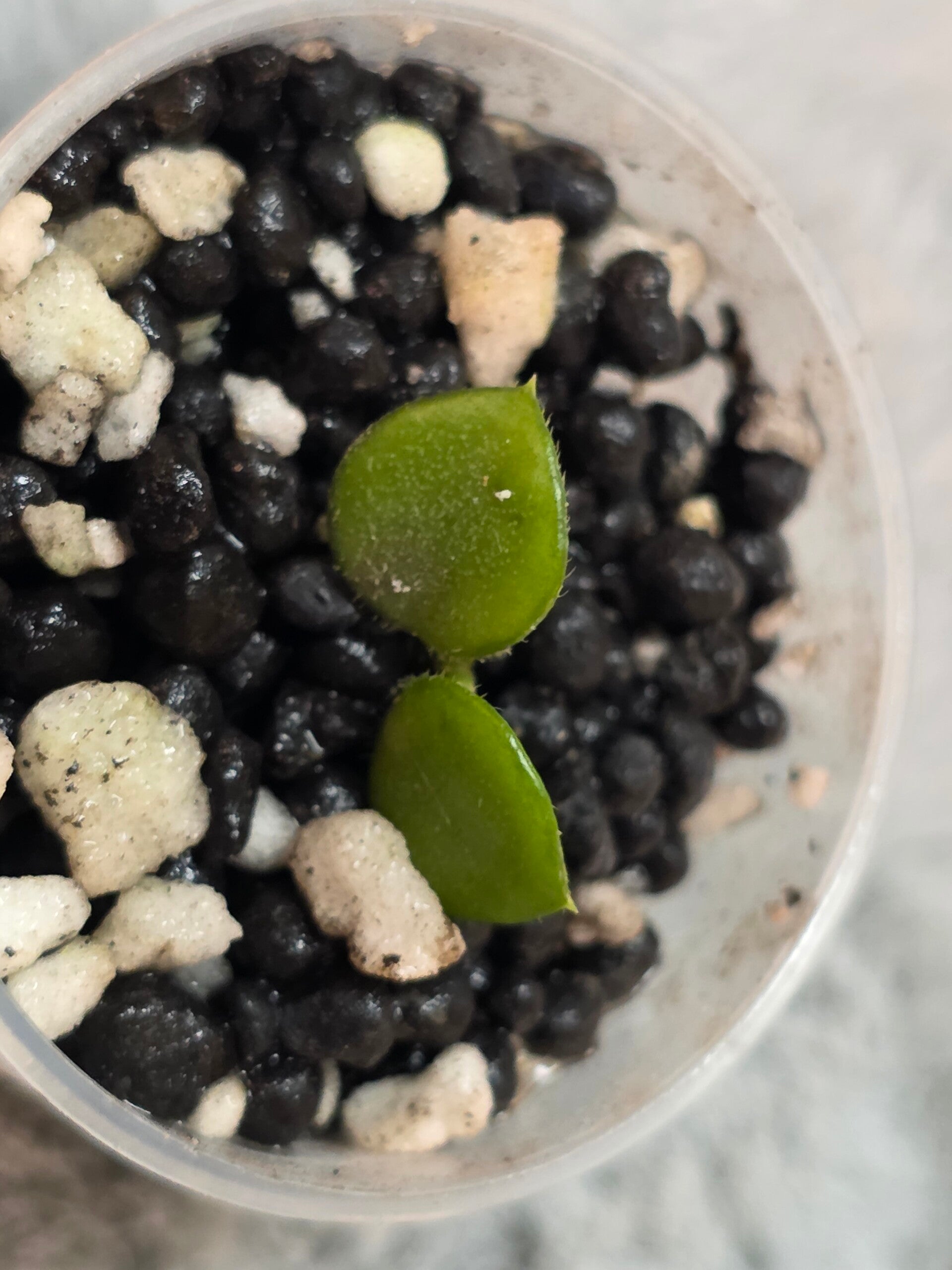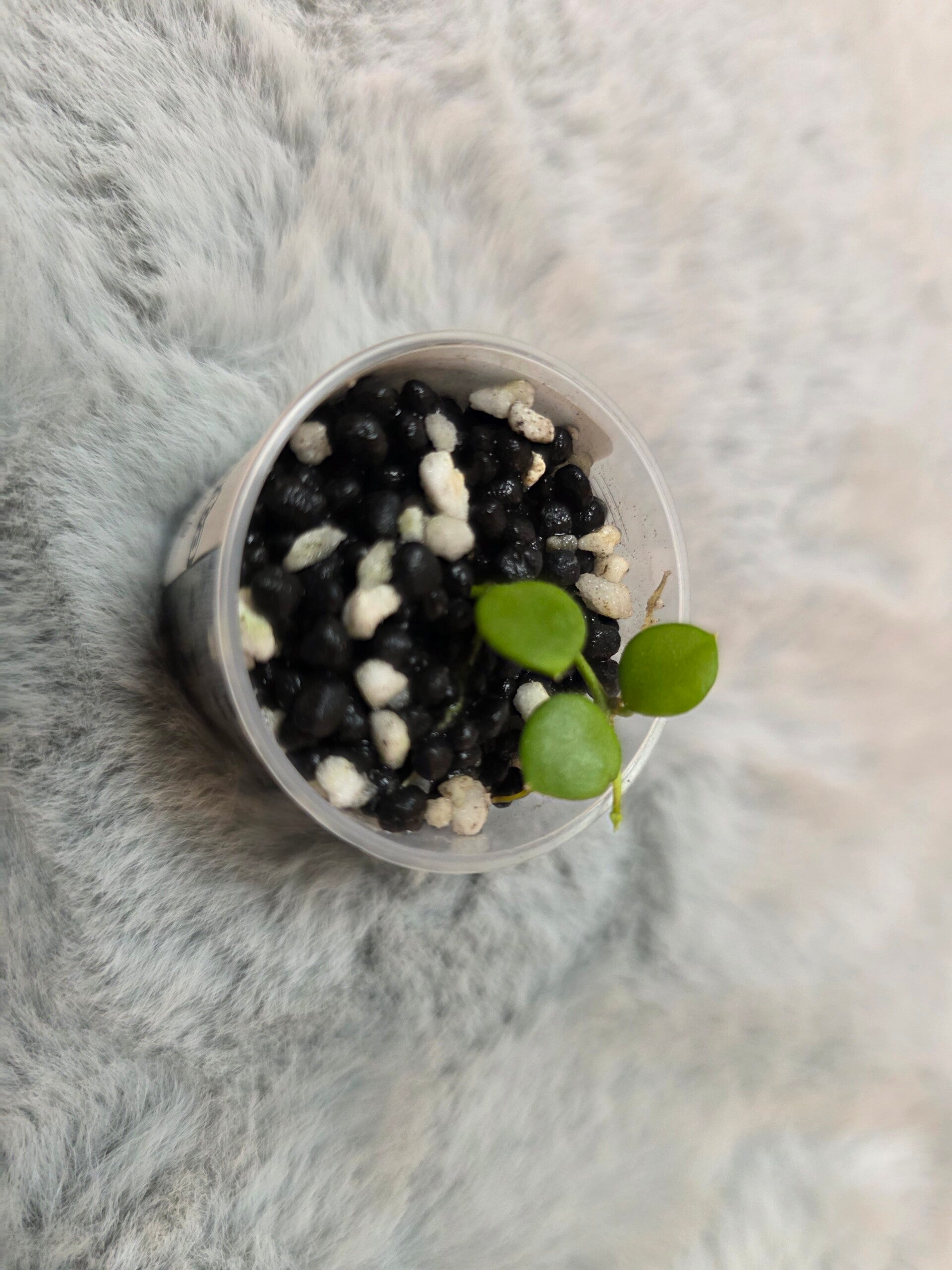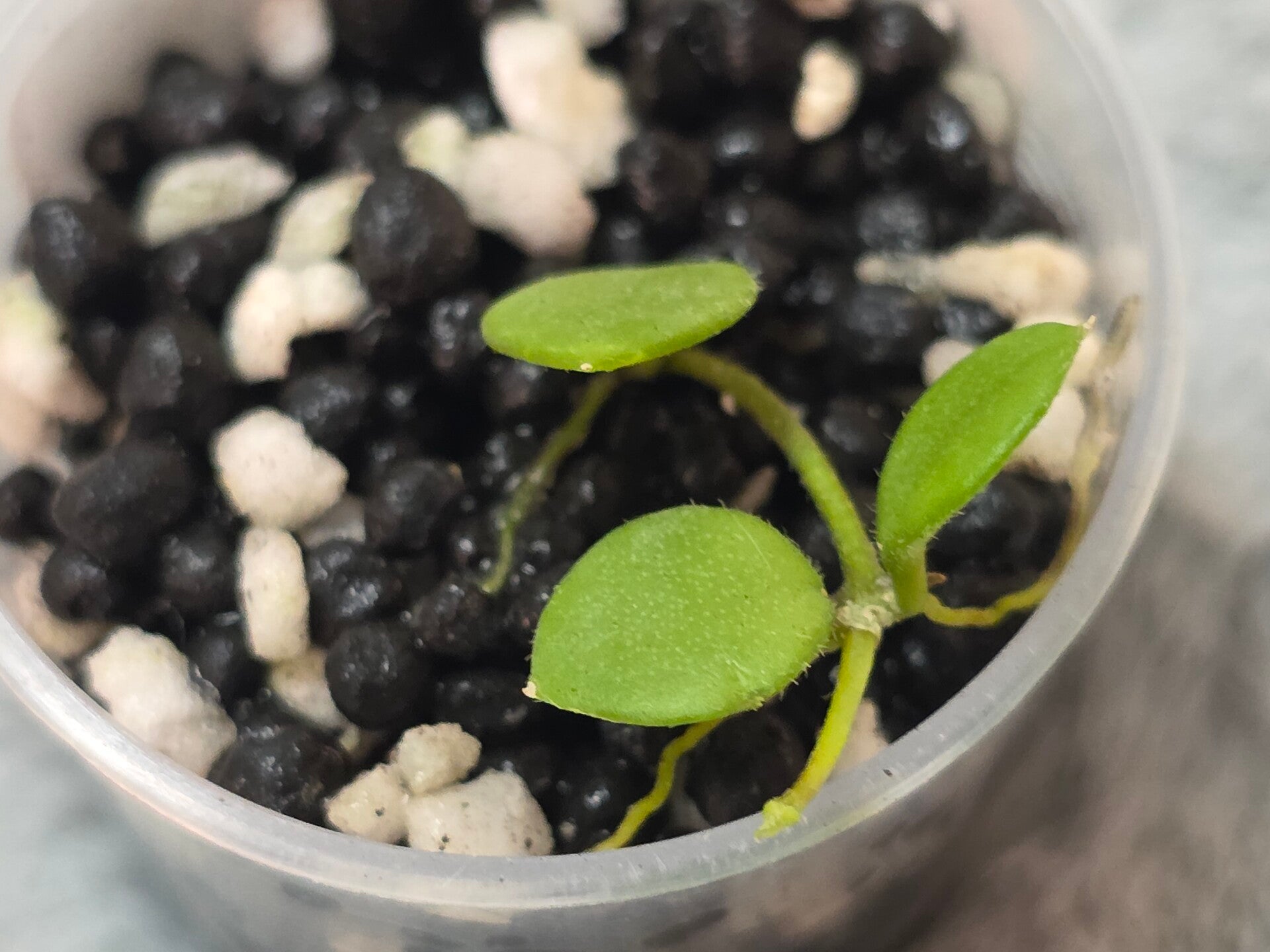 Diese ist leicht bewurzelt und steht in einem Acrylbecher mit Stratum und Kanuma.