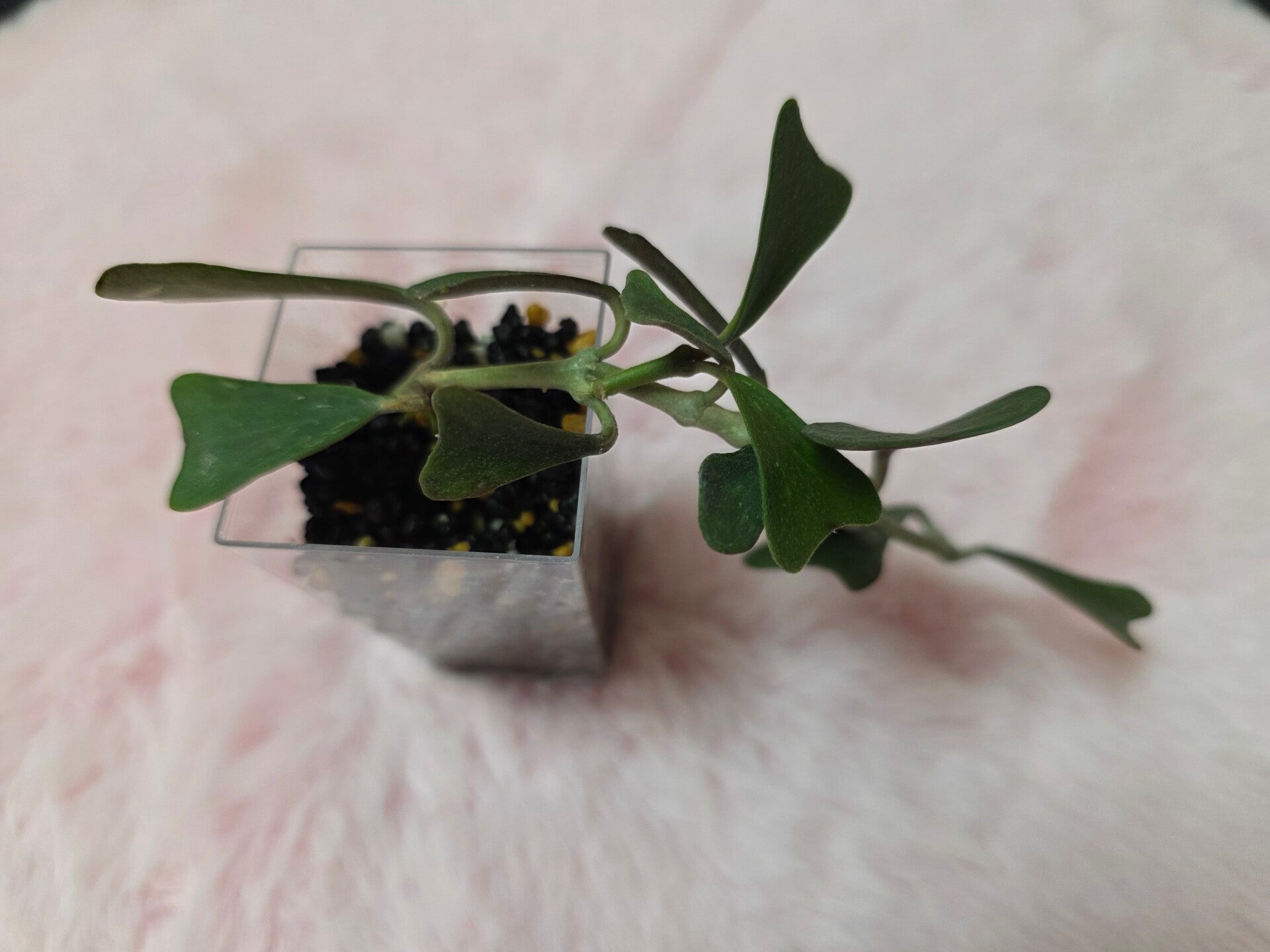 Diese ist bewurzelt und steht in einem Acrylbecher mit Stratum und Kanuma.